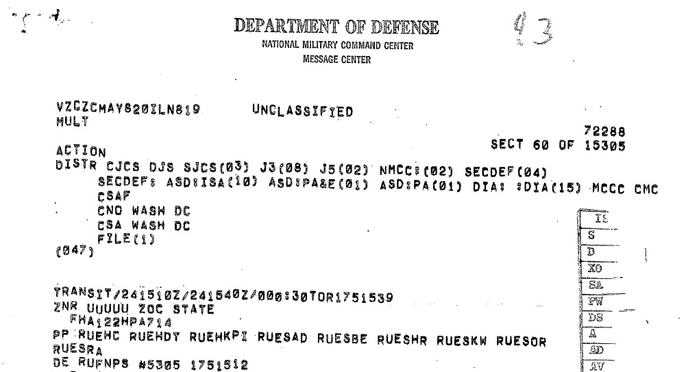 המסמך מתוך פרסום של הארכיון לביטחון לאומי בארצות הברית.