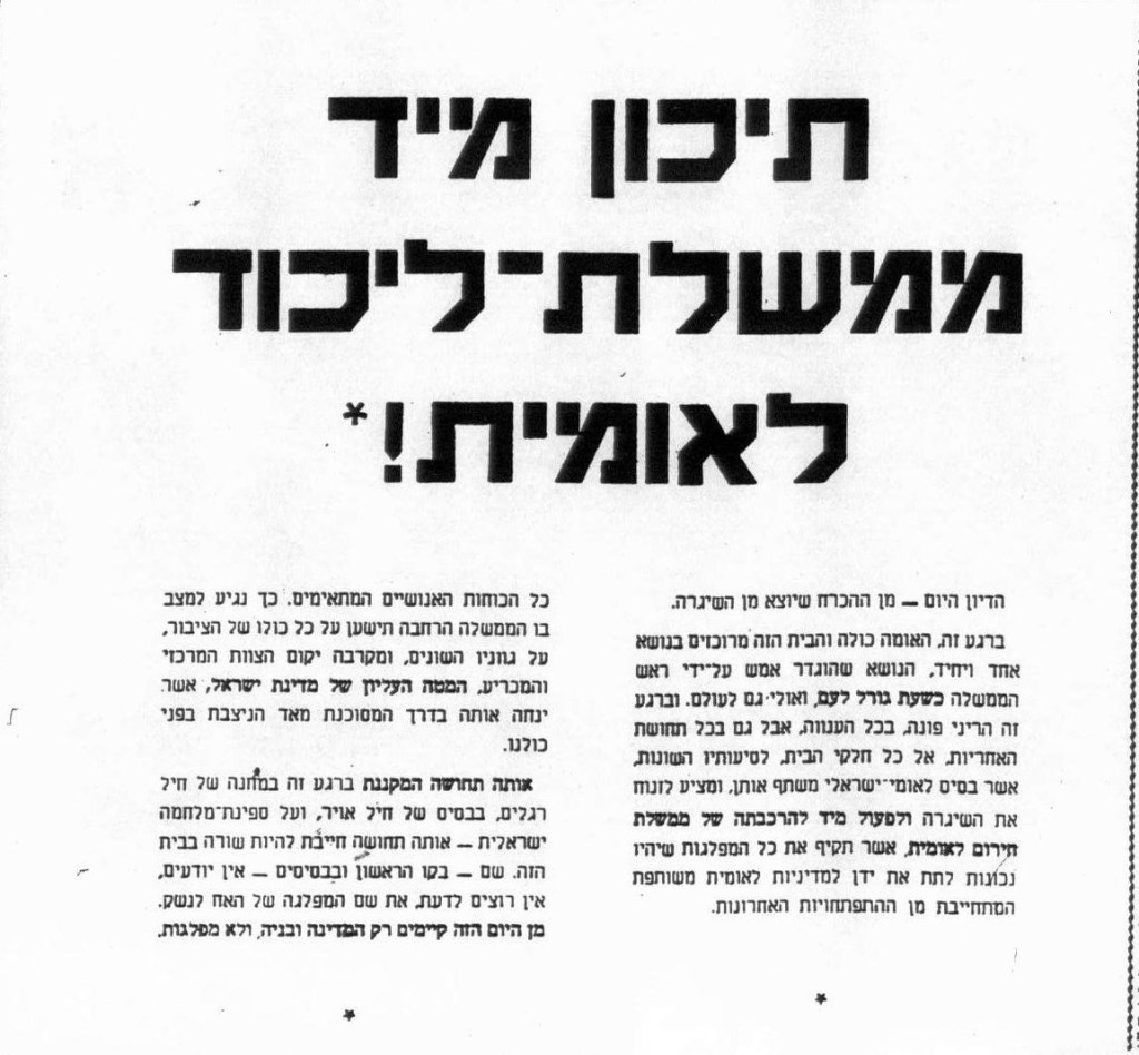 נאומו של ראש הממשלה לוי אשכול לאומה ב-28 במאי 1967 היה לא ברור ותרם להרגשה שהממשלה זקוקה לחיזוק.