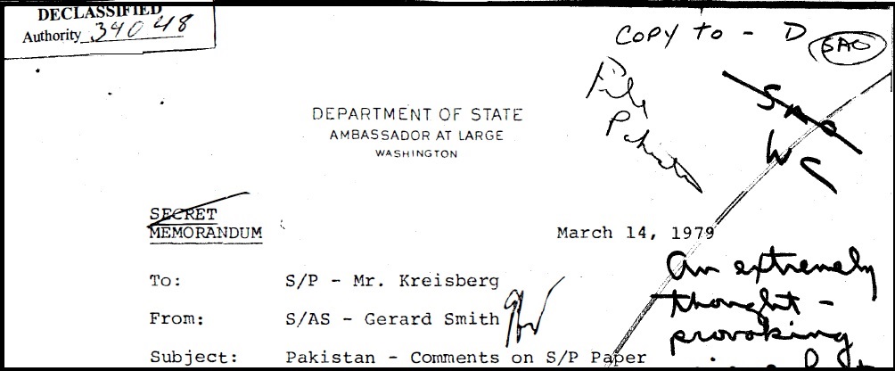 מסמכים מהשנים 1979-1978 שפורסמו על ידי הארכיון למחקרי ביטחון לאומי בארצות הברית מראים את תפקידו המוביל של עבד אל-קדיר ח'אן ברכישתם הרכיבים שסייעו בקידומה של תכנית הגרעין הפקיסטנית. כמו כן, מגלים המסמכים שבכירים אמריקנים דנו באפשרות שמדינה אחרת (ולא ארצות הברית) תהרוס את המתקנים הגרעיניים של פקיסטן.