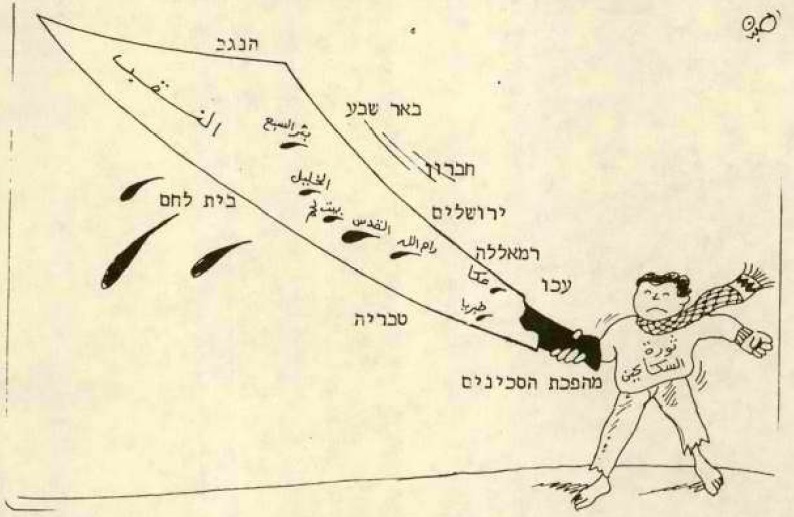 על רקע אירועים אלה פורסמה בעיתון שיצא לאור במרוקו, באפריל 1991, הקריקטורה הבאה תחת הכותרת "מהפכת הסכינים". להלן תרגום שלה כפי שהופץ בלקט של חצב מה-11 ביוני אותה שנה:
