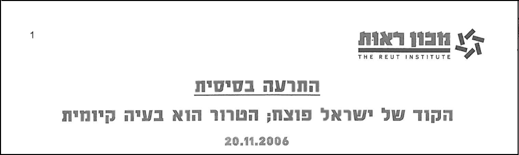 בנובמבר 2006, לאחר מלחמת לבנון השנייה, פרסם מכון ראות התרעה בסיסית בה הוא טען שהטרור הוא בעיה קיומית למדינת ישראל. כאשר קוראים דברים אלה היום לאחר 17 שנים, רואים כמה הם נשארו רלוונטיים גם כיום. להלן עיבוד של מהות ההתראה והמסקנות הנגזרות ממנה: